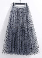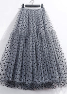 • Design romantico: Gonna lunga plissettata in tulle con stampa a pois