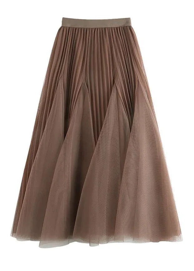 Questa gonna lunga in tulle plissettato crea un effetto vaporoso e sofisticato.