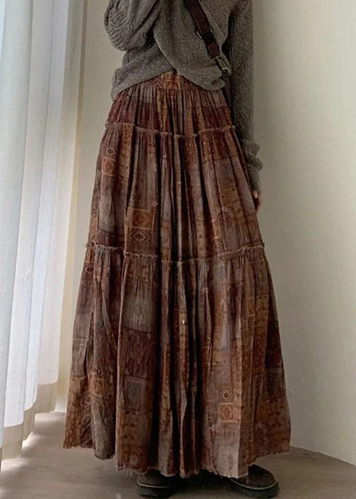 Questa gonna maxi in tessuto leggero e fantasia etnica è l’ideale per creare look comodi, caldi e ricercati.