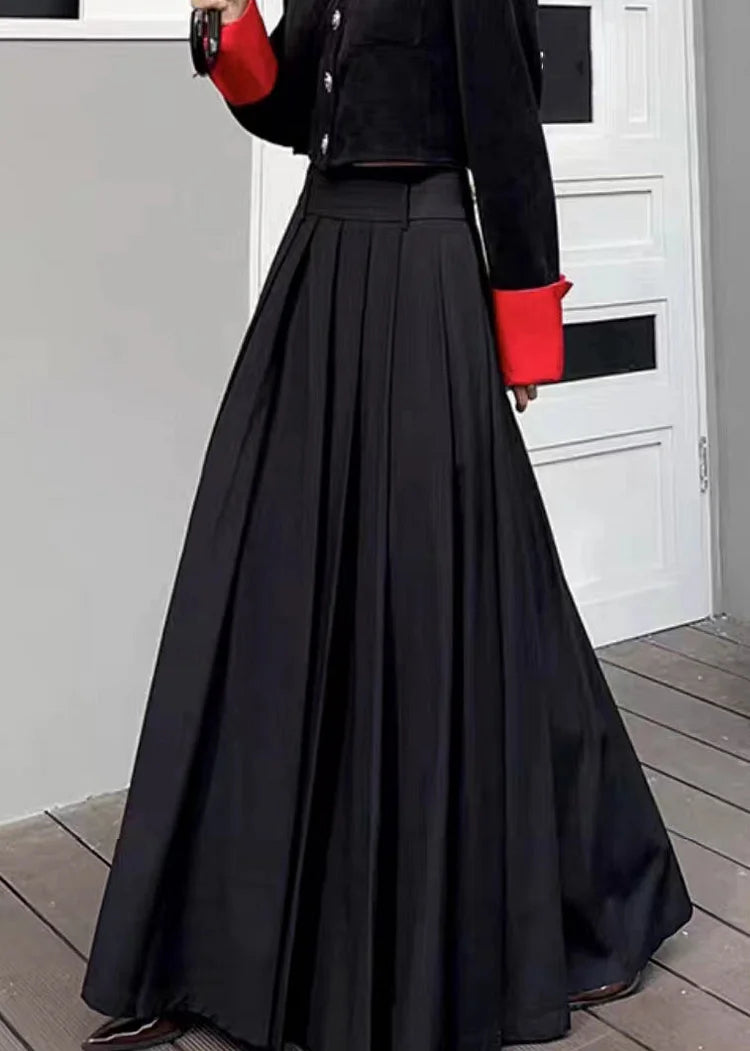 Questa gonna lunga plissettata in nero offre movimento e raffinatezza, perfetta per creare look femminili e versatili.