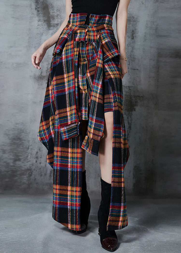 • Design versatile: fantasia scozzese e spacco laterale per un look audace e contemporaneo