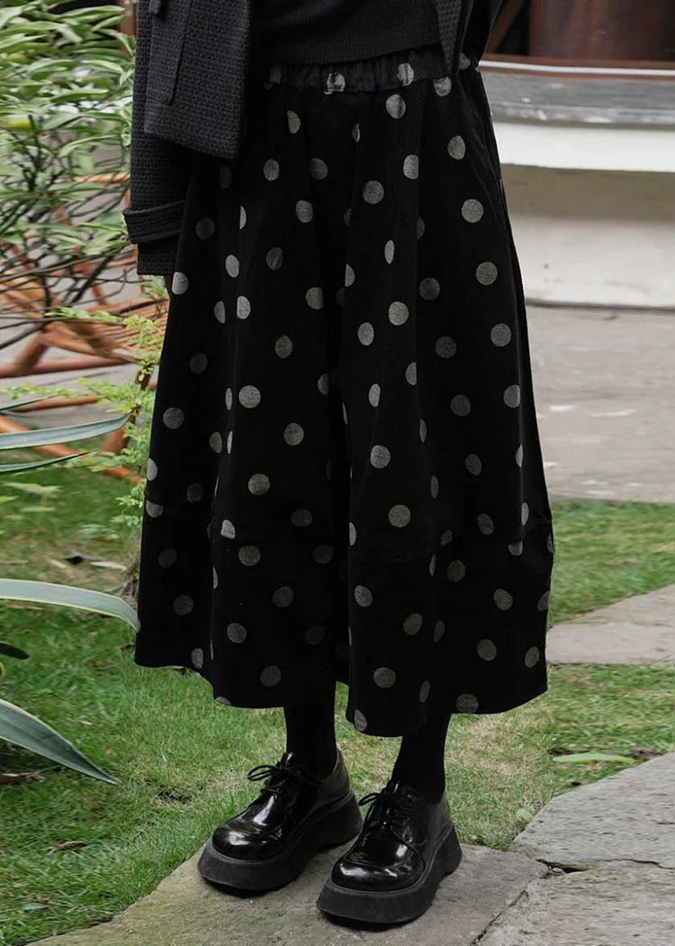 Questa gonna midi a pois unisce stile retrò e comfort moderno, con una silhouette ampia e facile da abbinare.