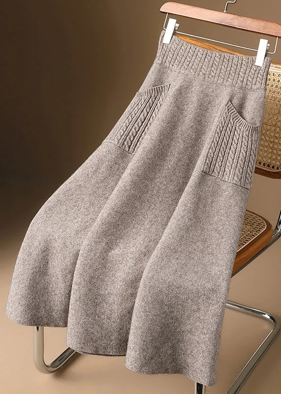 Questa gonna midi in maglia con tasche a trecce unisce praticità e stile sofisticato.