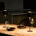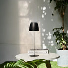 Questa lampada da tavolo a batteria unisce design minimal e funzionalità, perfetta per cene all'aperto o ambienti moderni.