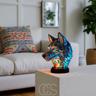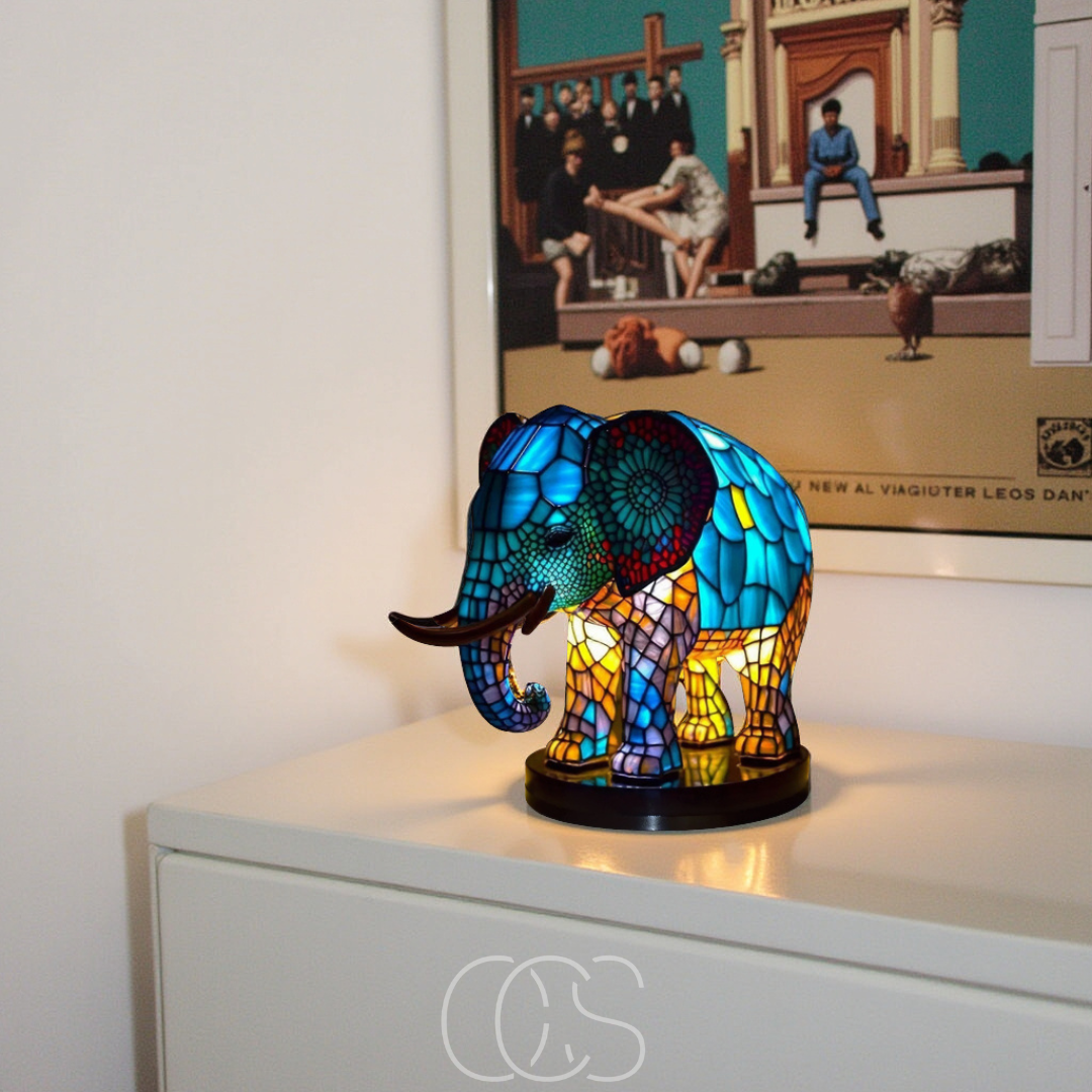 Questa lampada a forma di gufo in vetro colorato è un vero pezzo decorativo che unisce arte e funzionalità.