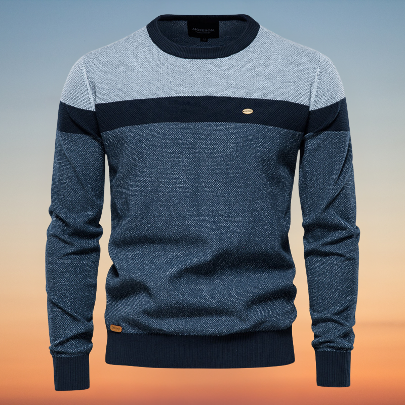 Questo maglione con blocchi di colore è perfetto per un look maschile curato e casual.