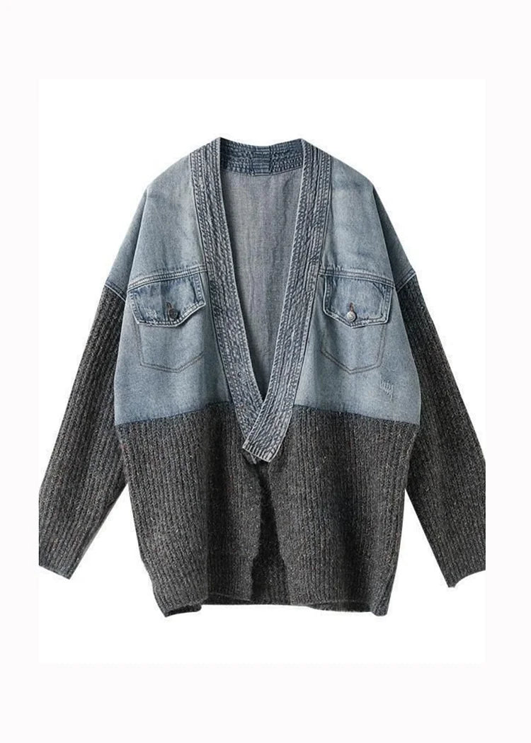 Questo cardigan unisce l’aspetto casual del denim al calore della maglia in un mix perfetto di stile e comfort.