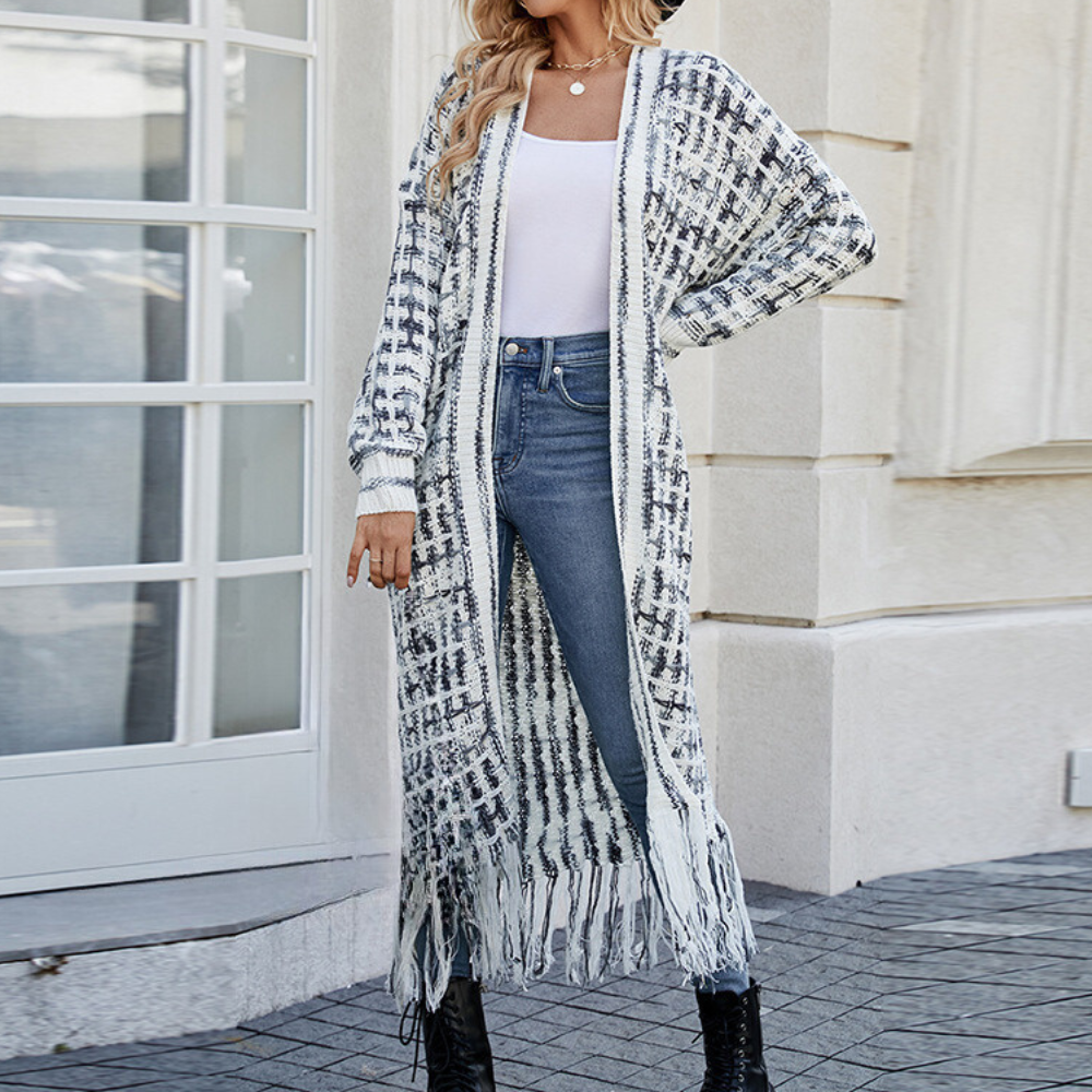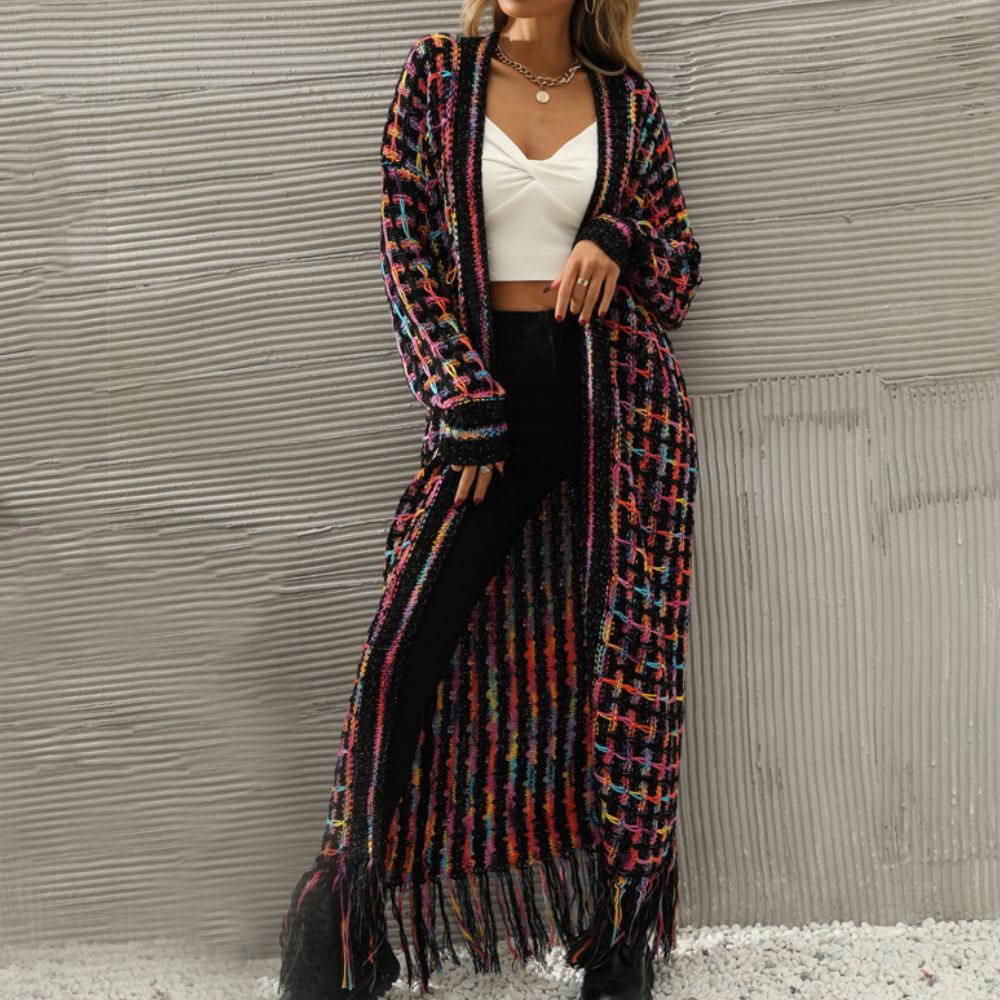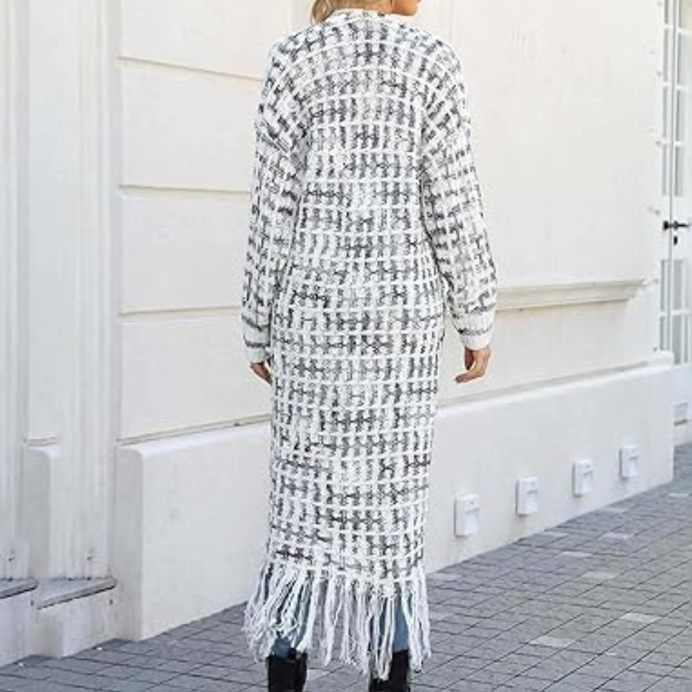 Cardigan Lungo con Frange | Maglia Morbida | Stile Boho-Chic