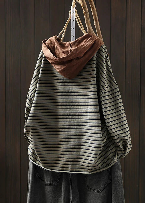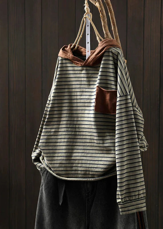 Questa felpa a righe con cappuccio e dettagli in contrasto è perfetta per uno stile casual e rilassato.