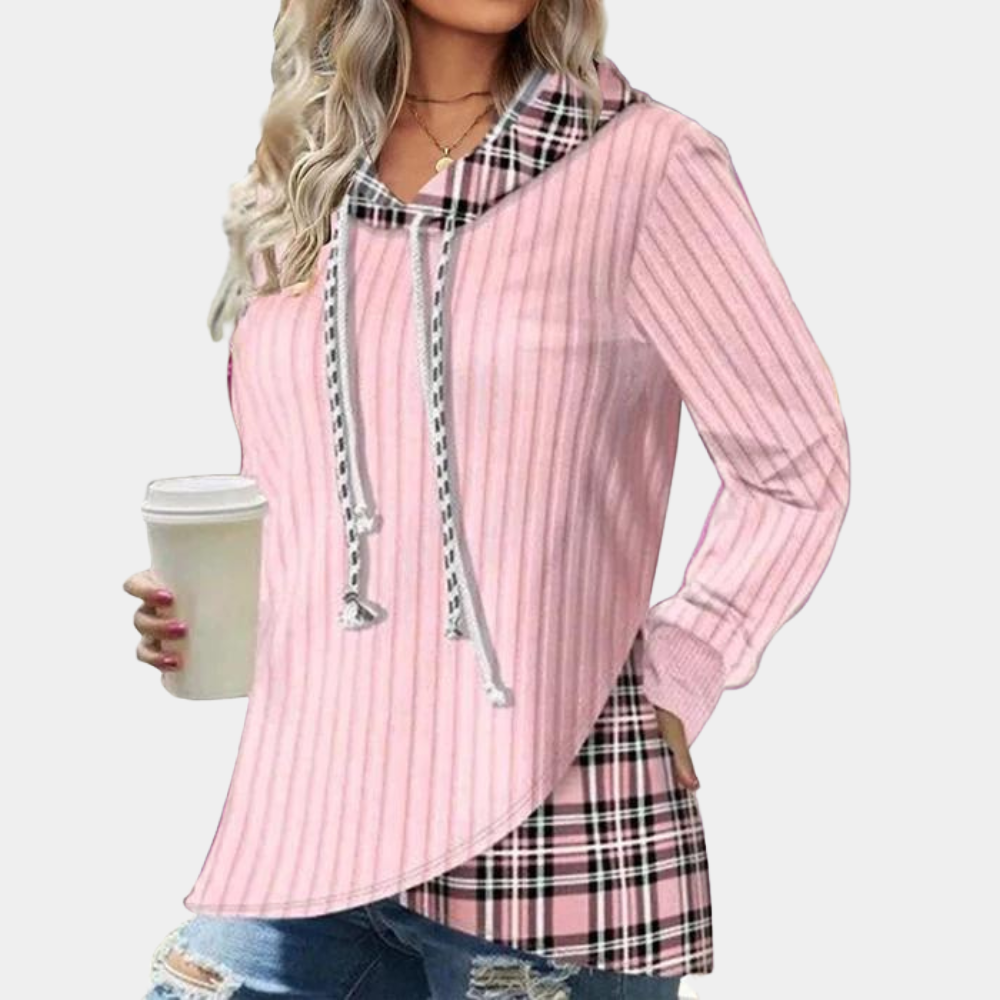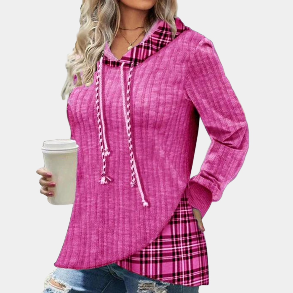 Felpa con Cappuccio | Design Asimmetrico | Dettagli a Quadri