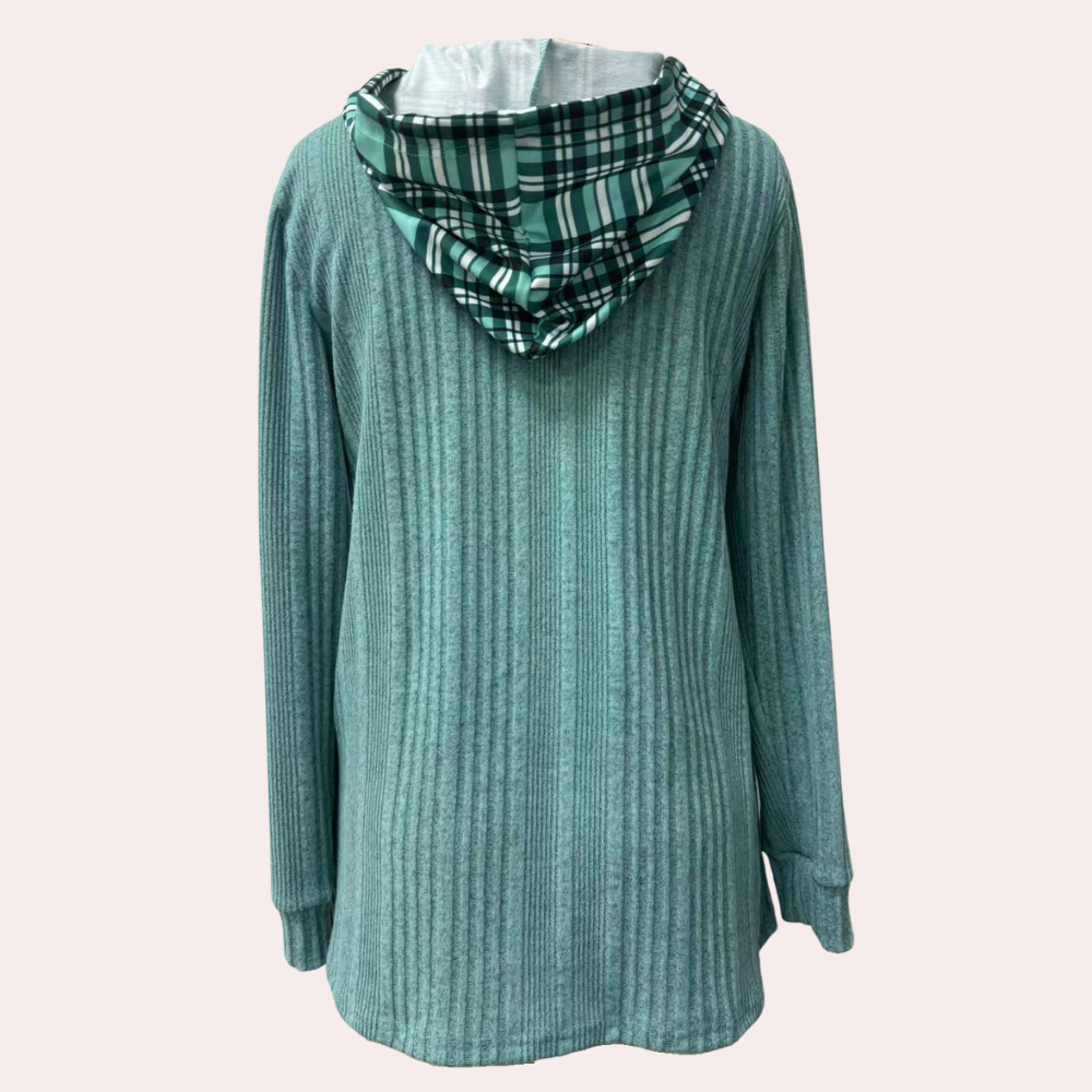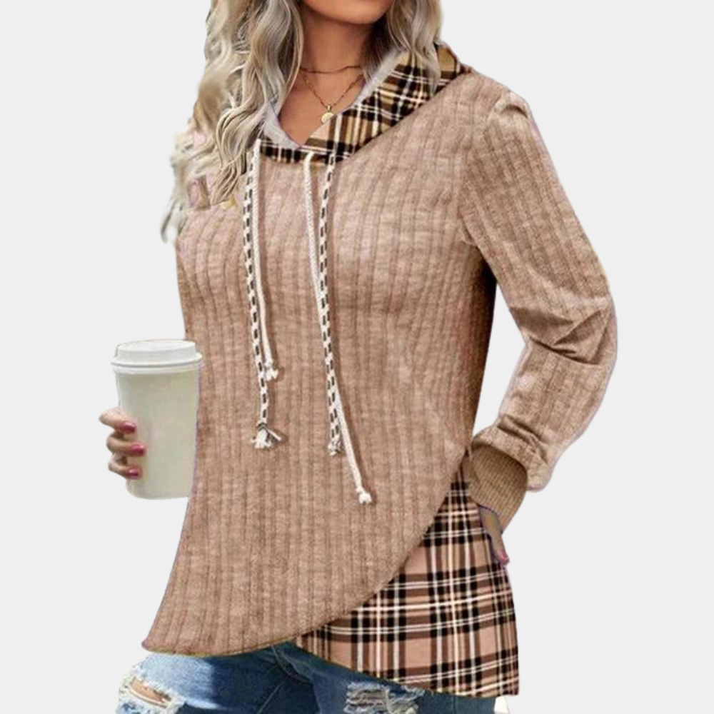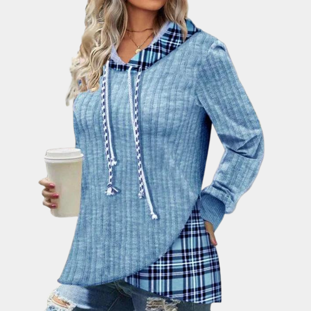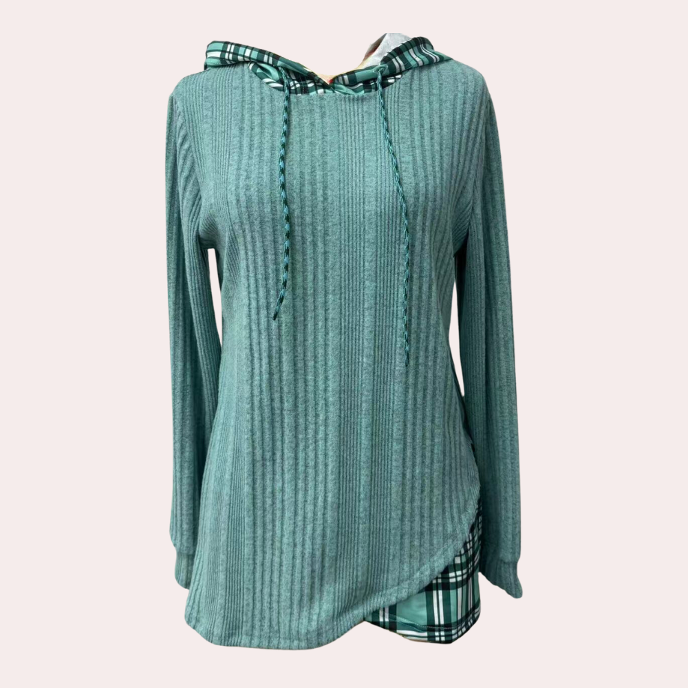 - Materiale: Maglia morbida con dettagli in tessuto a quadri