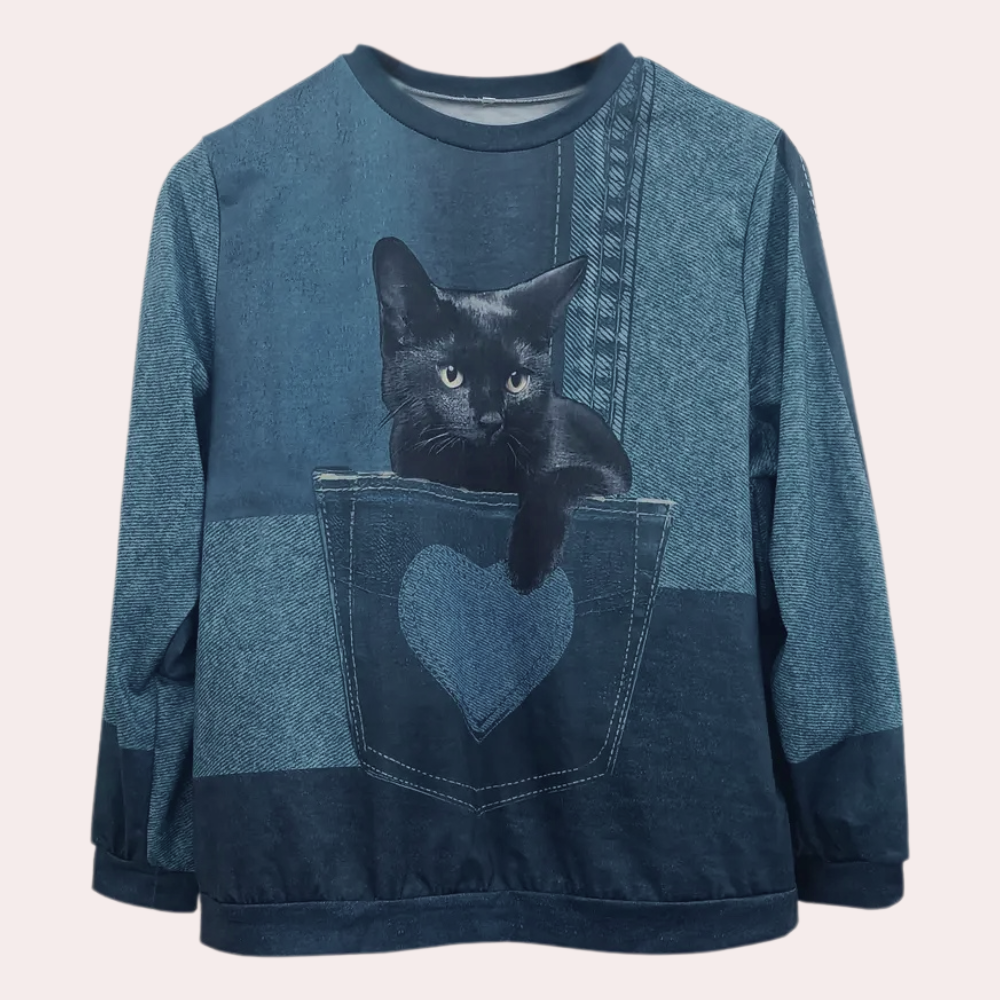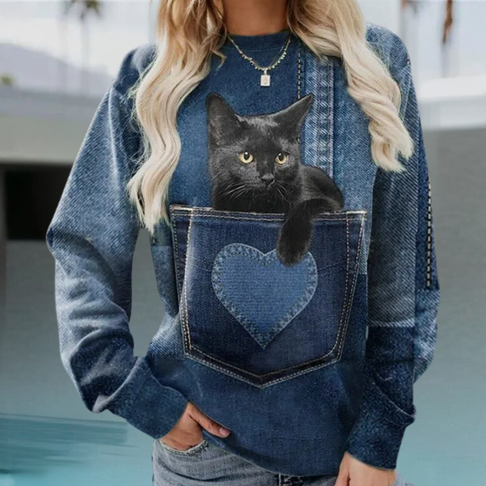 Felpa Gatto Denim | Stampa 3D | Casual e Originale