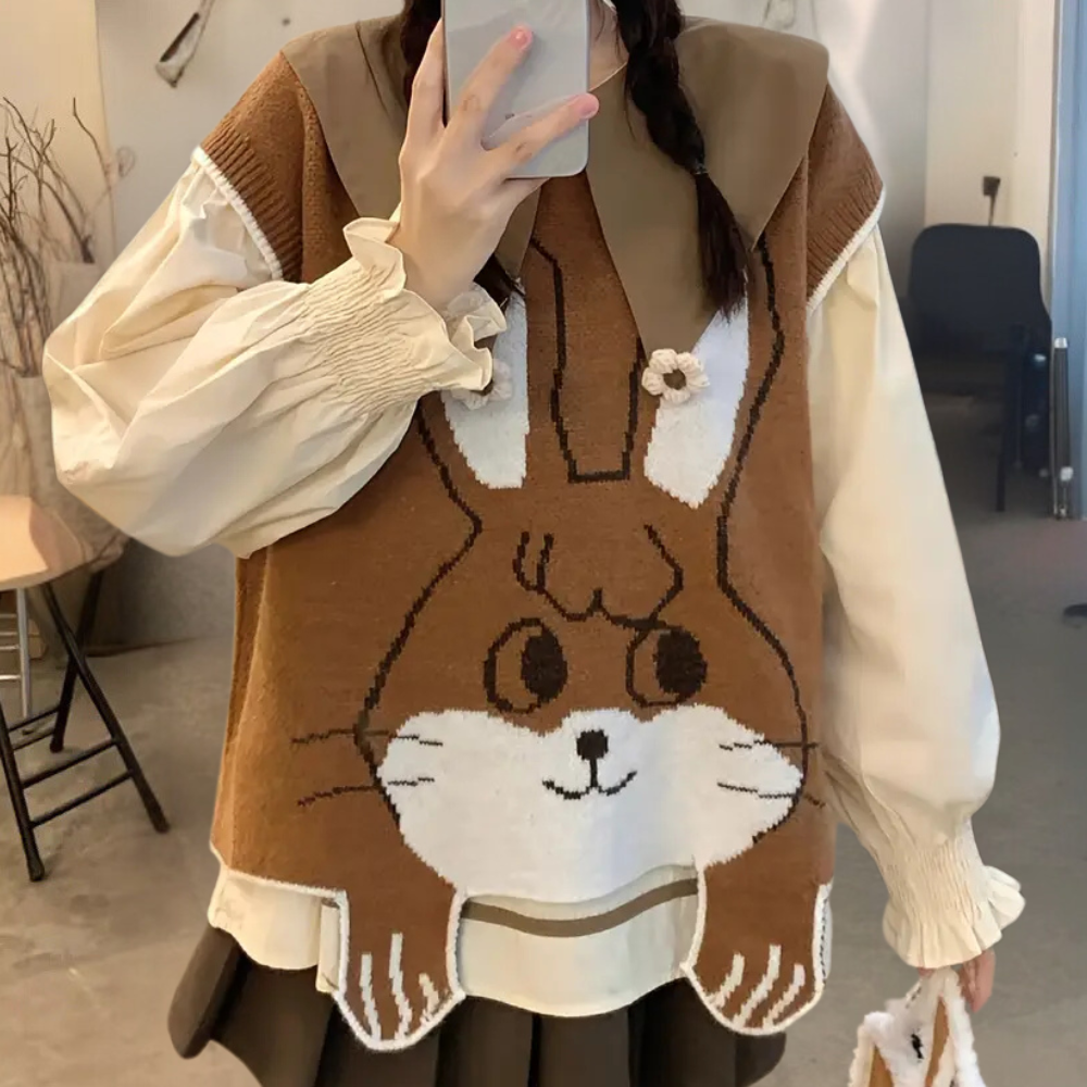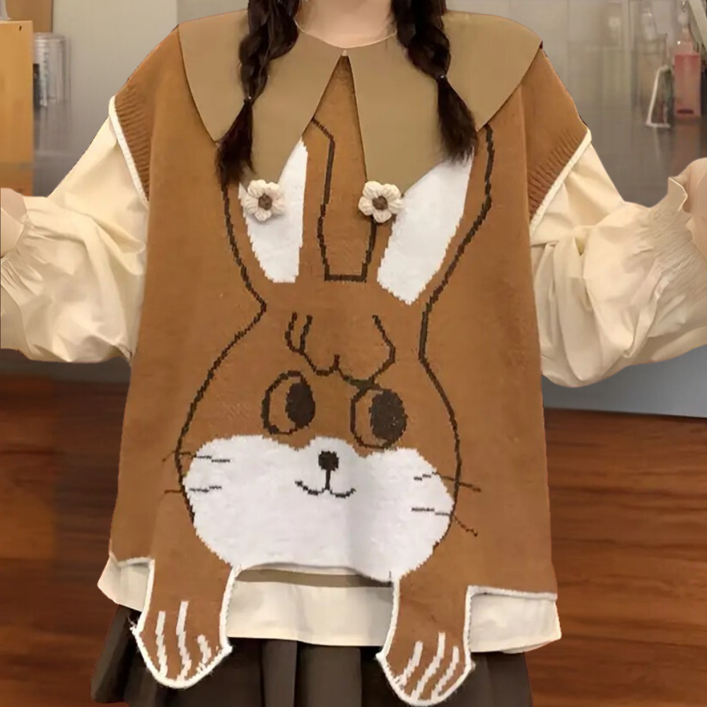 Questo gilet con design a coniglio e dettagli 3D è perfetto per un outfit kawaii e giocoso.