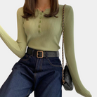 Questa maglia a costine con bottoncini è perfetta per un look elegante ma casual.