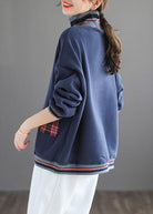 Il dettaglio a quadretti sulla tasca aggiunge un tocco giocoso, mentre il collo alto e i polsini con bordo a righe offrono comfort e carattere.