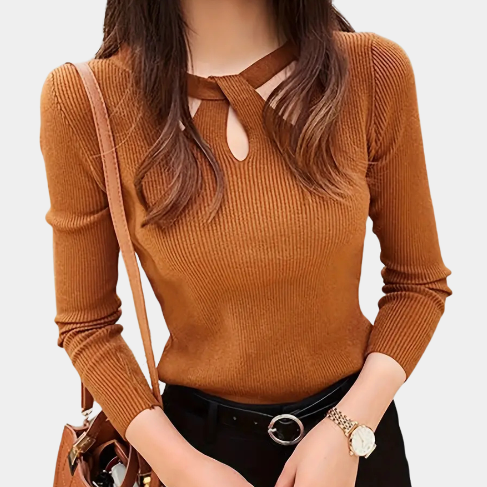 Questa maglia aderente con scollo cut-out dona un tocco sofisticato e moderno al tuo look.