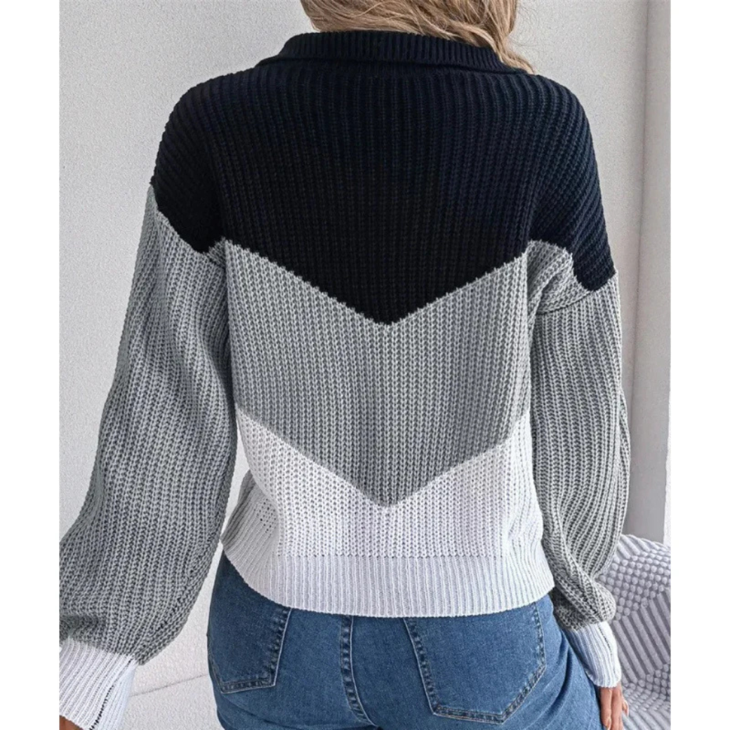 Maglione a Blocchi di Colore | Scollo a V | Morbido e Trendy