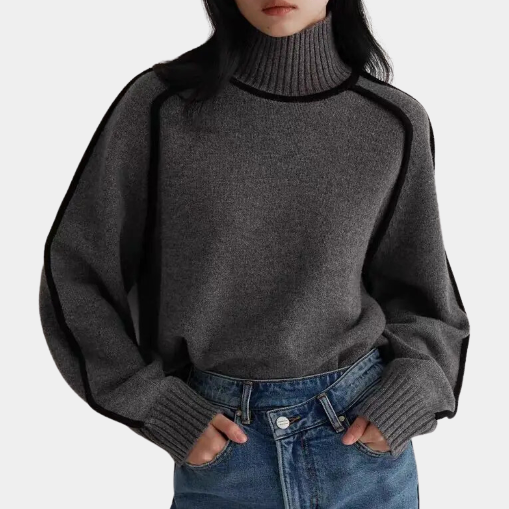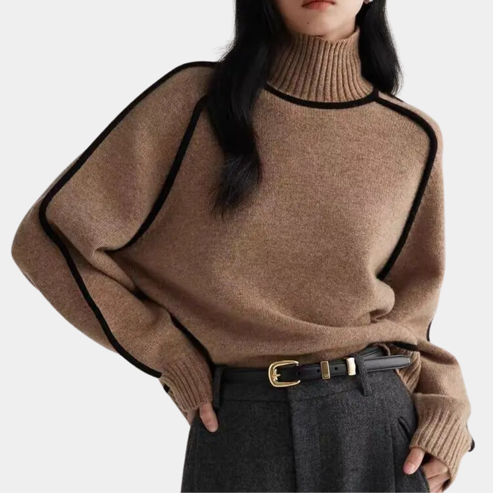 Maglione a Collo Alto | Dettagli a Contrasto | Stile Elegante e Caldo