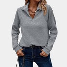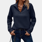 Questo maglione a coste con colletto e zip è perfetto per un look rilassato ma curato.