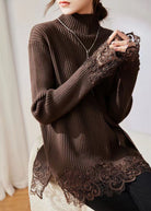 Questo pullover a coste con dettagli in pizzo è la scelta perfetta per chi ama distinguersi con un tocco raffinato.