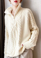 Questo maglione a trecce con zip al collo offre un perfetto equilibrio tra eleganza classica e comfort quotidiano.