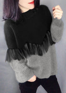 Questo pullover bicolore unisce il calore della maglia spessa a un dettaglio in tulle che lo rende unico e sofisticato.