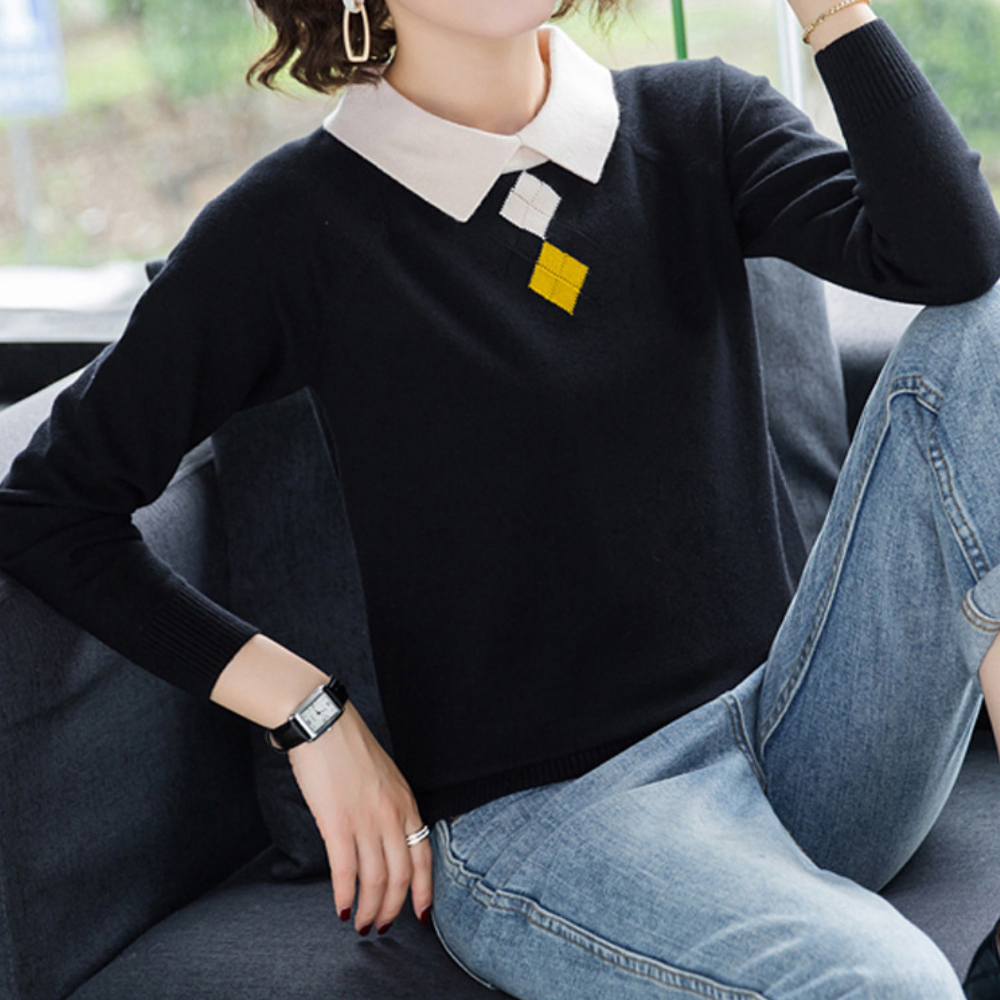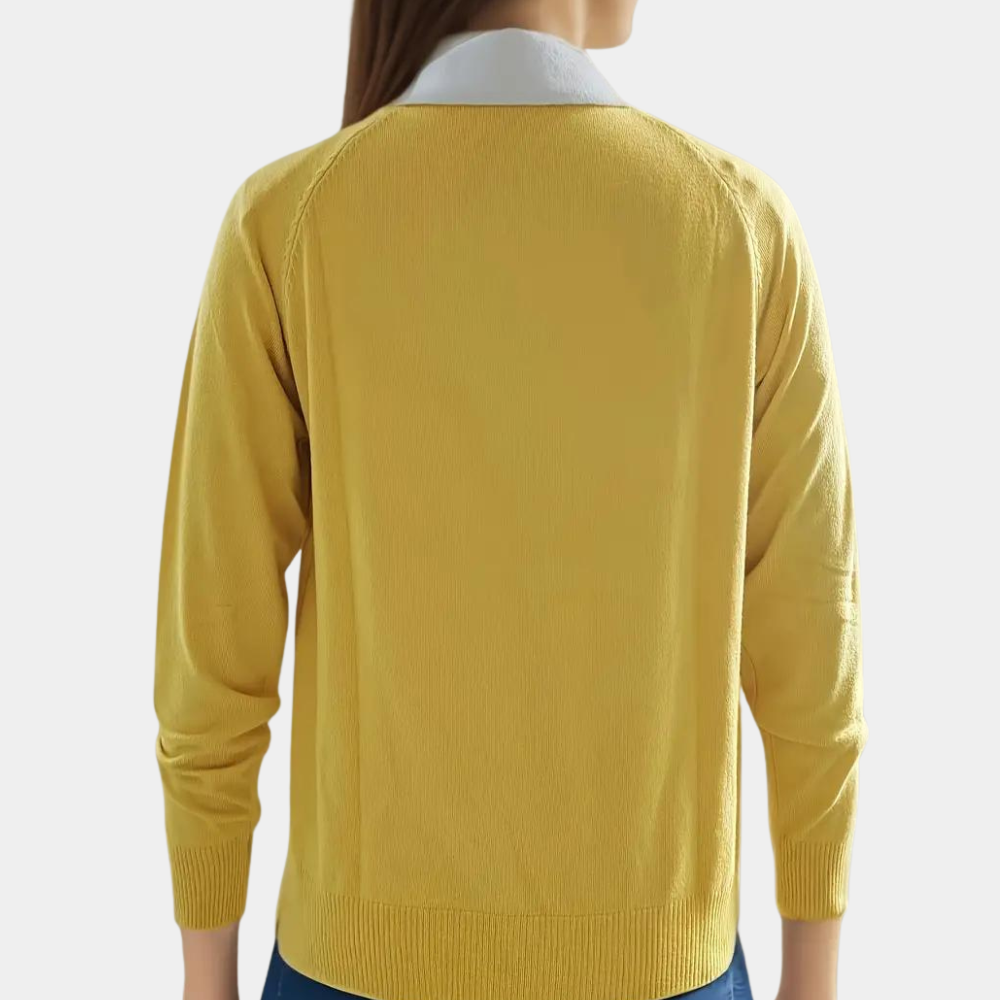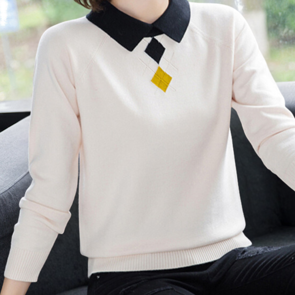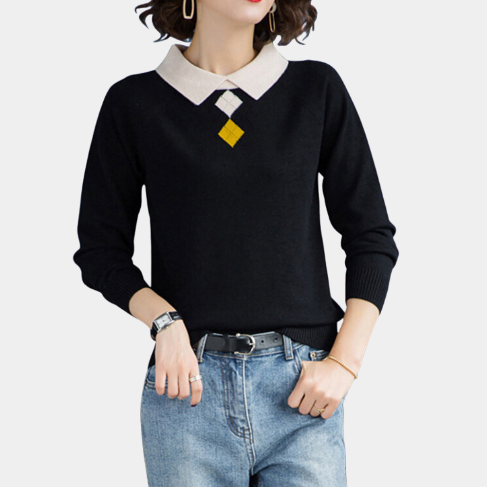 Questo maglione con colletto a contrasto è perfetto per un look raffinato e casual-chic.