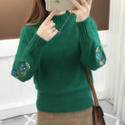 Maglione Dolcevita con Ricami Floreali | Misto Lana | Elegante e Femminile