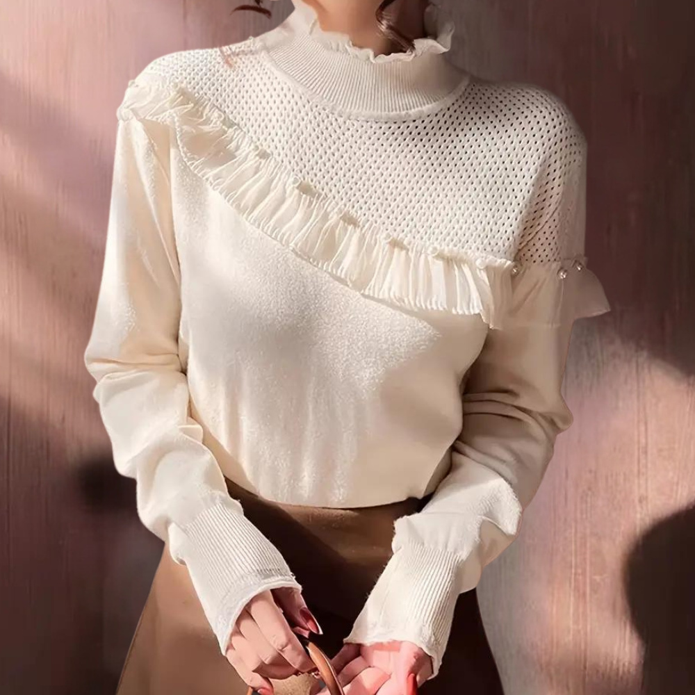 Maglione Dolcevita Donna | Ruches & Perle | Stile Elegante e Romantico