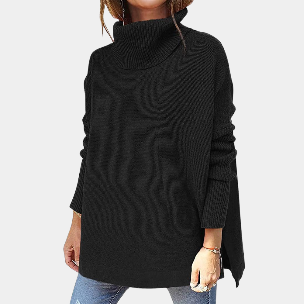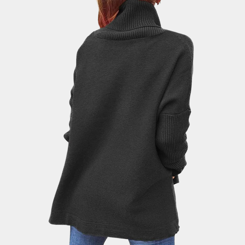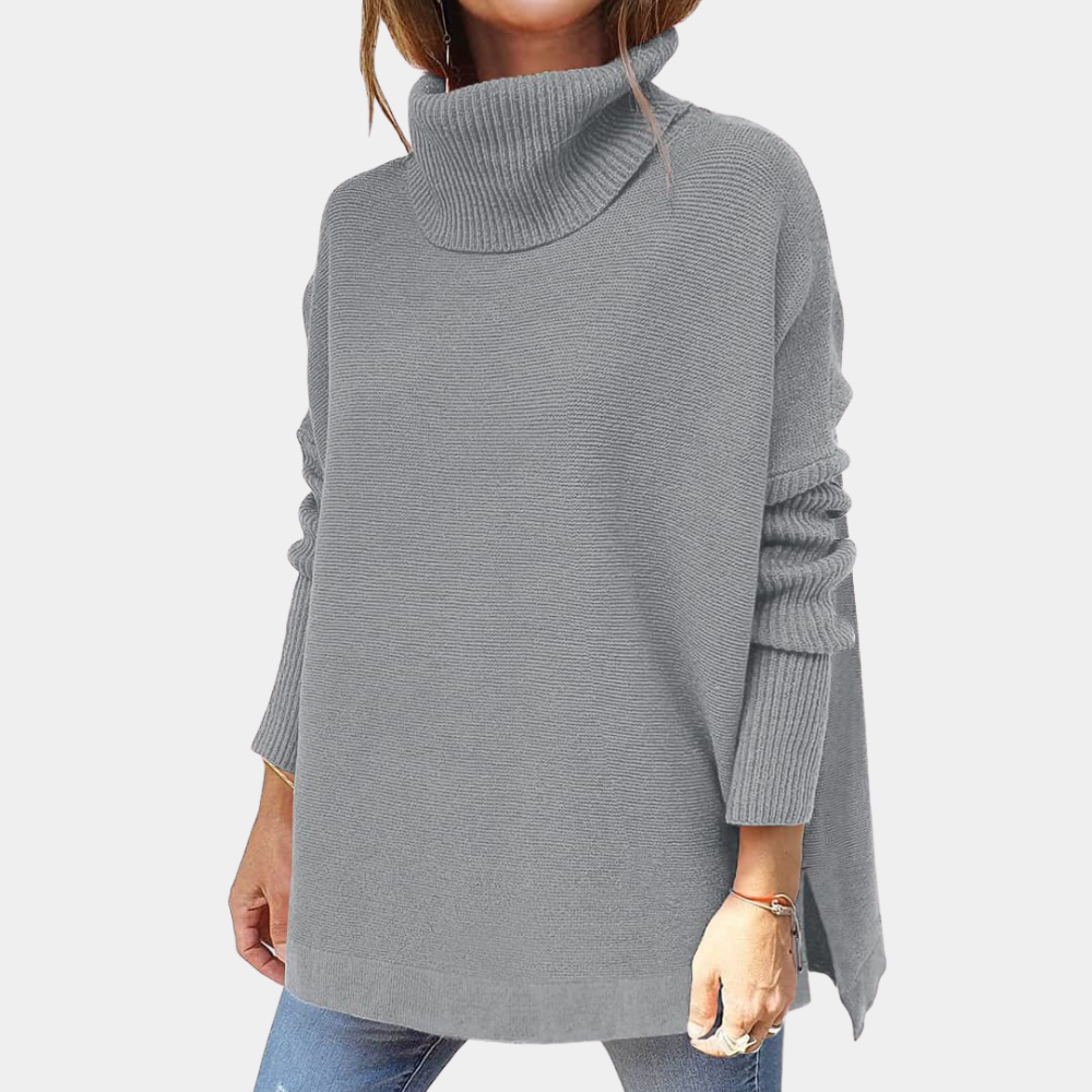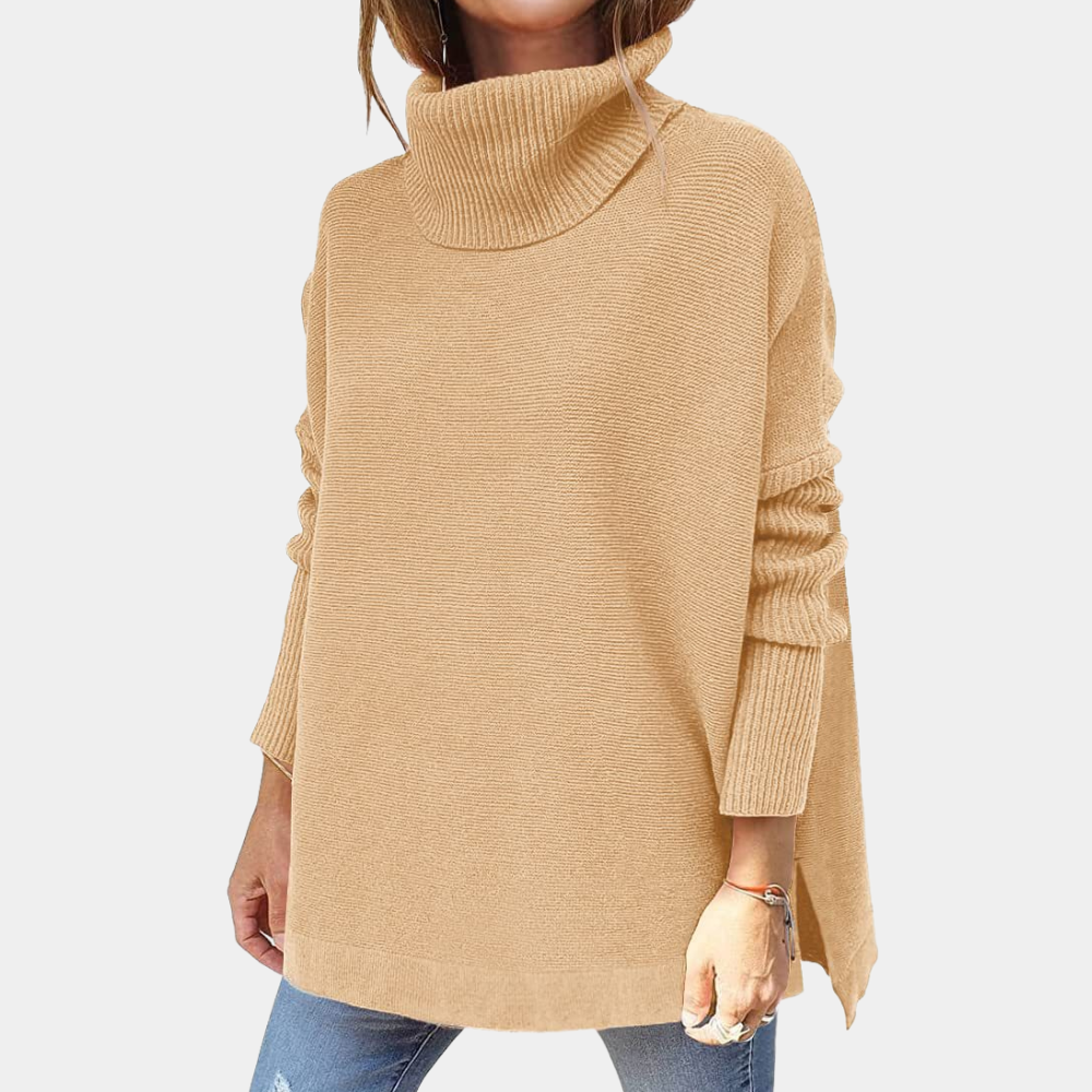 Questo maglione dolcevita oversize è l’ideale per un look elegante e senza tempo.