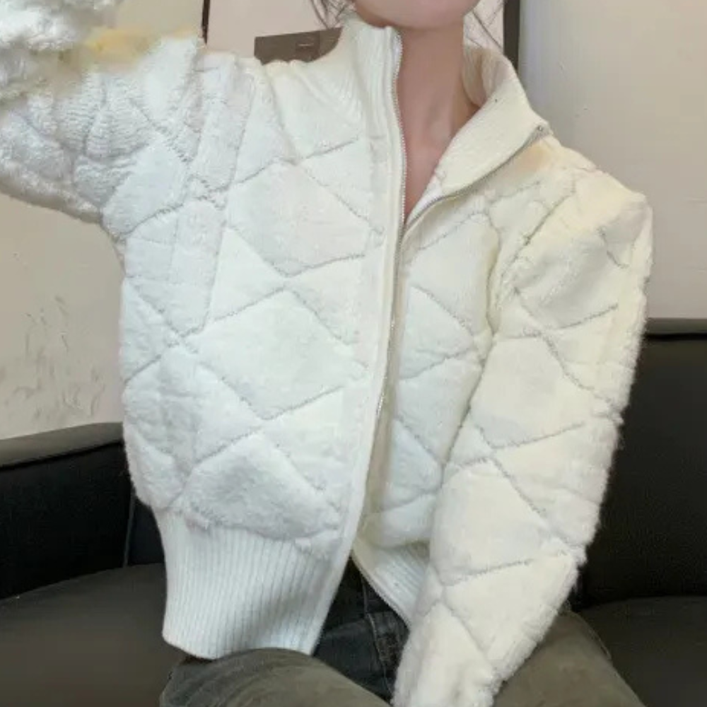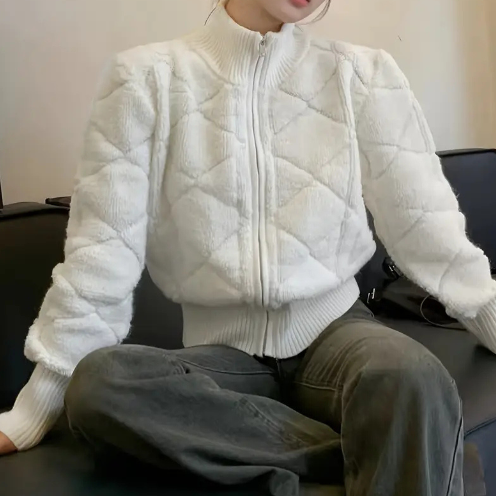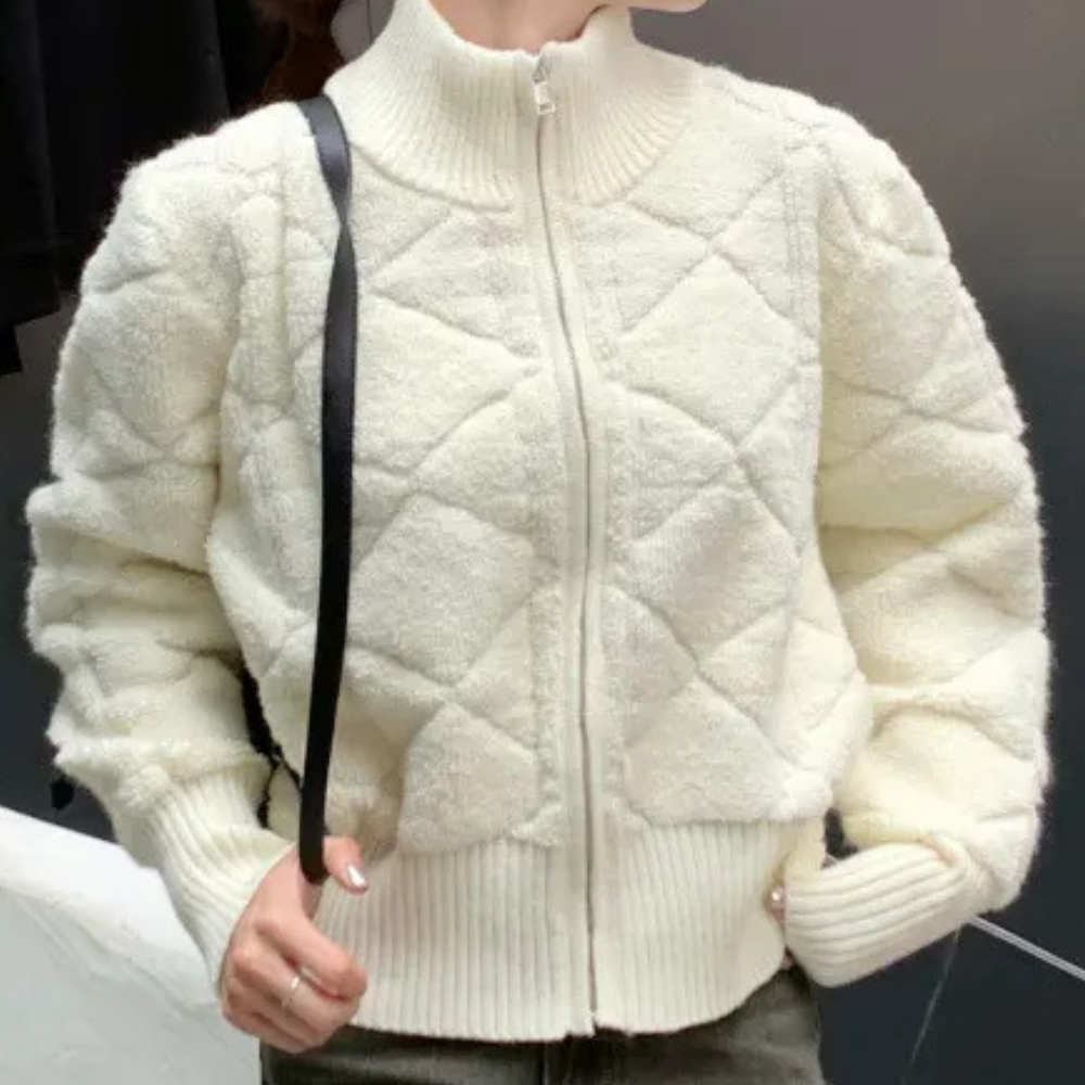 Maglione Donna con Zip | Effetto Trapuntato | Morbido e Caldo