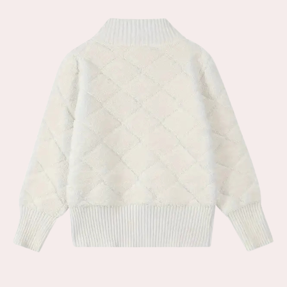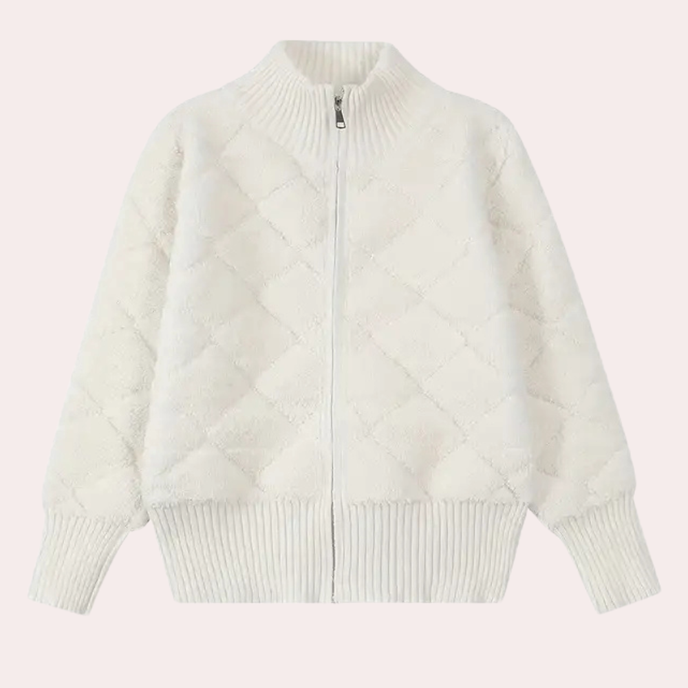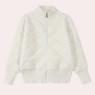 Questo maglione con zip e lavorazione trapuntata è perfetto per un look cozy e chic.