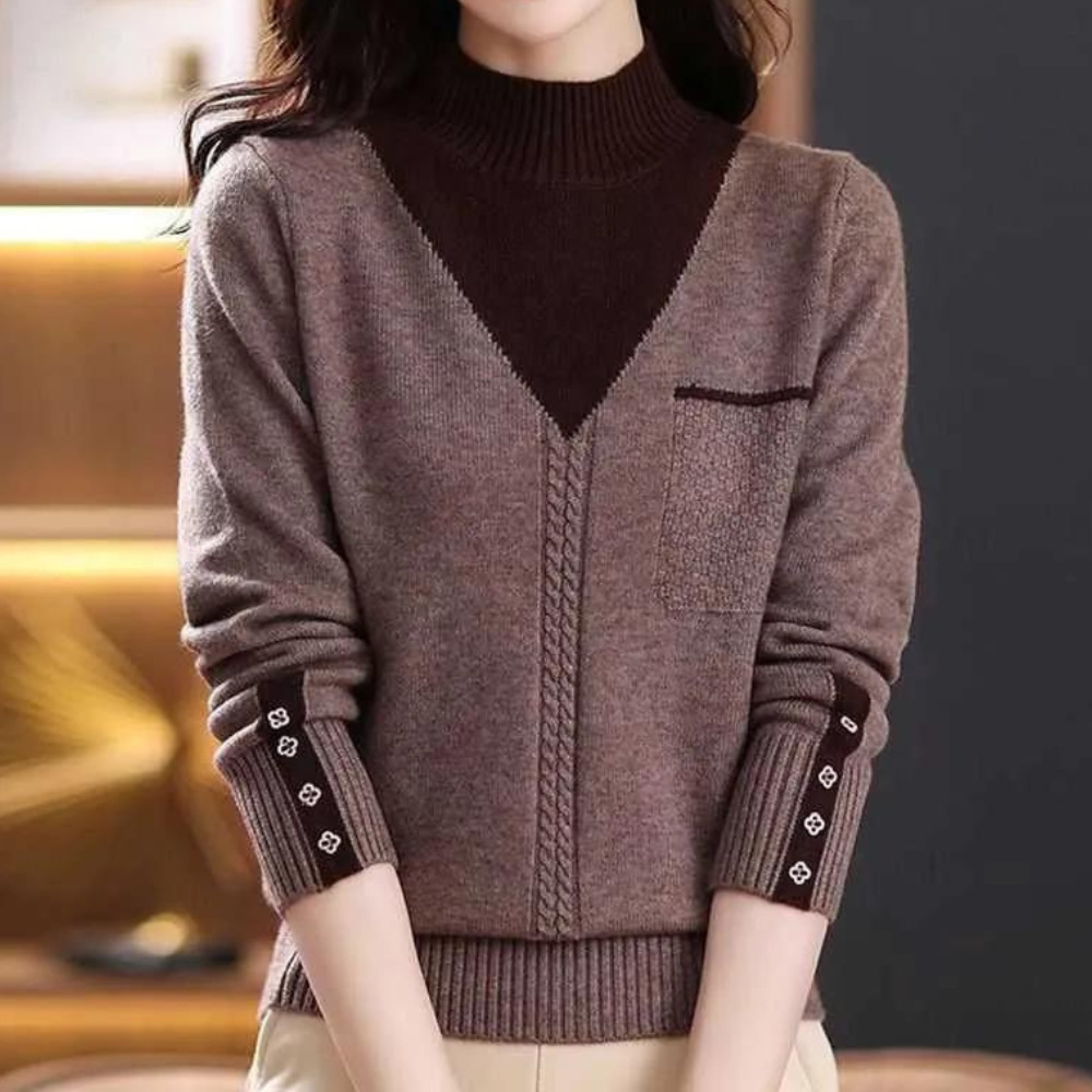 Maglione Donna | Effetto Doppio Strato & Bottoni | Stile Elegante e Moderno