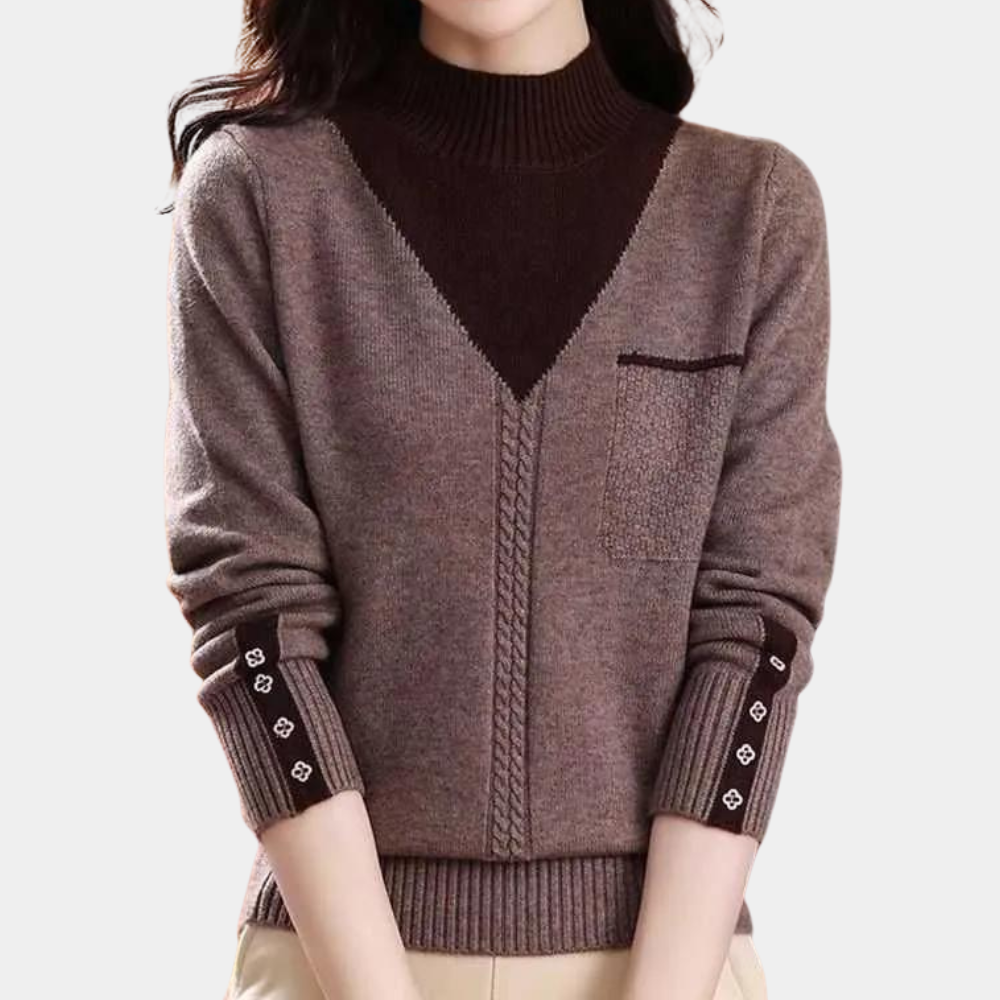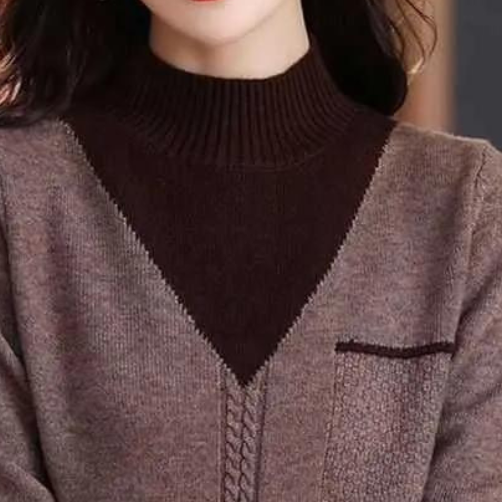 - Collo: Dolcevita con scollo a V sovrapposto per un effetto stratificato