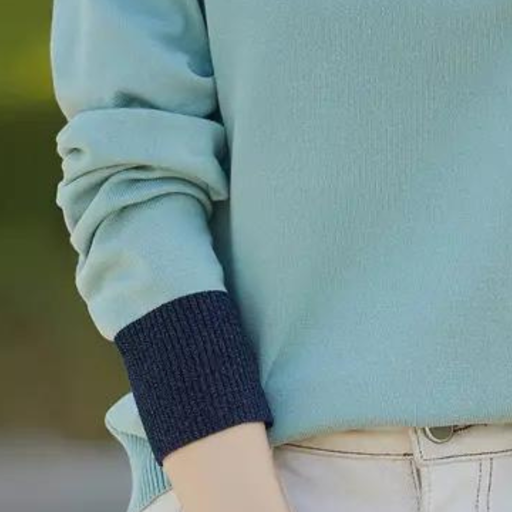 - Dettagli: Polsini e bordo a contrasto per un effetto elegante