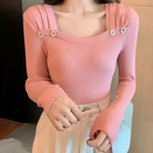 Questo maglione aderente con scollo quadrato e dettagli con bottoni sulle spalle è il mix perfetto tra eleganza e comfort.