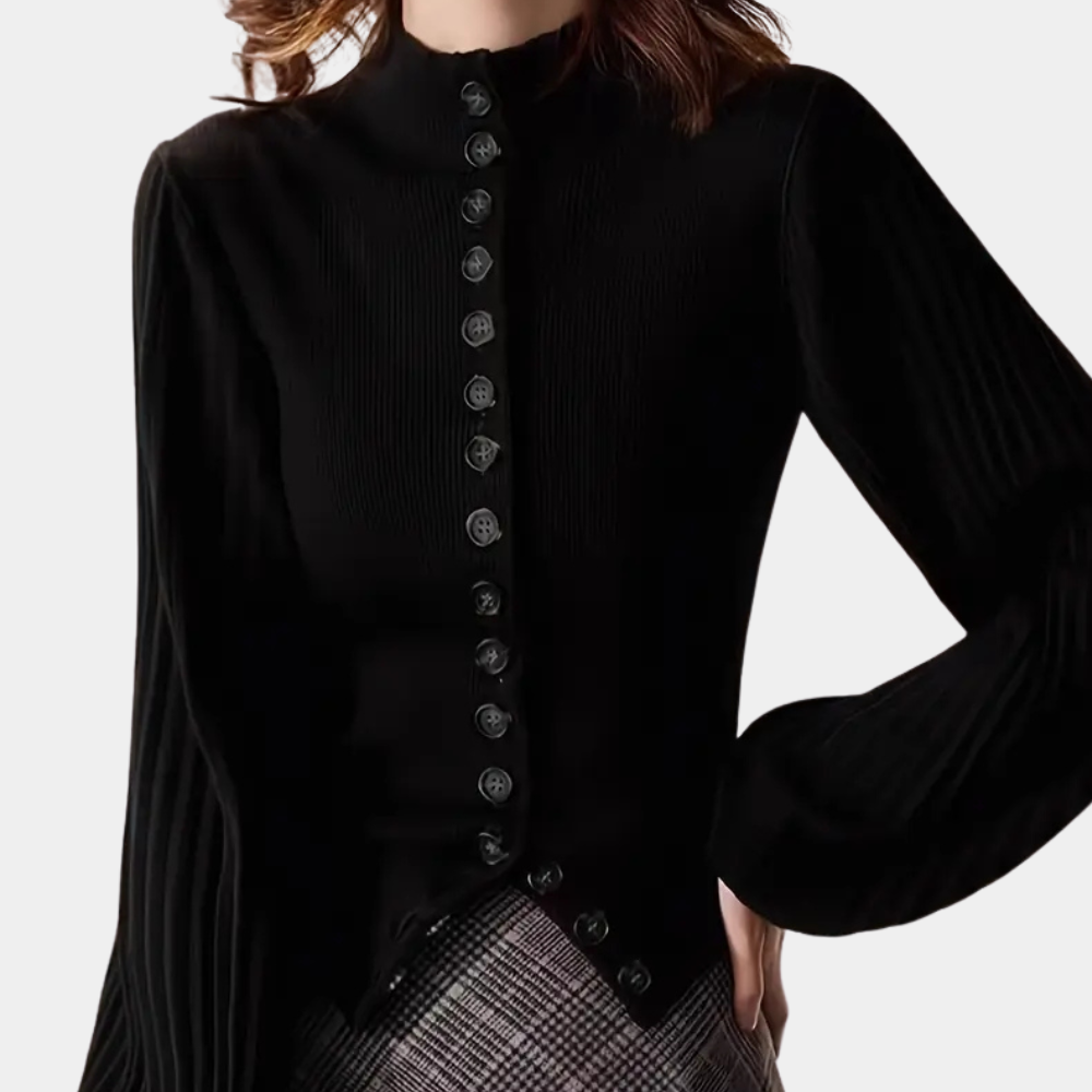 Con il suo design a bottoni e le maniche leggermente svasate, dona un look chic e senza tempo.