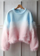 Questo maglione effetto peluche con sfumature pastello è la scelta perfetta per chi cerca stile e comfort in un solo capo.