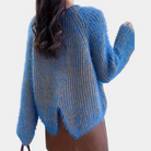 Questo maglione in filato peloso è perfetto per un look cozy e alla moda.