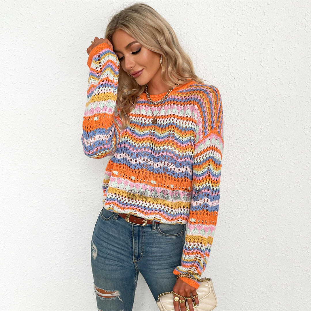 Questo maglione multicolore in maglia è perfetto per chi ama distinguersi con stile.