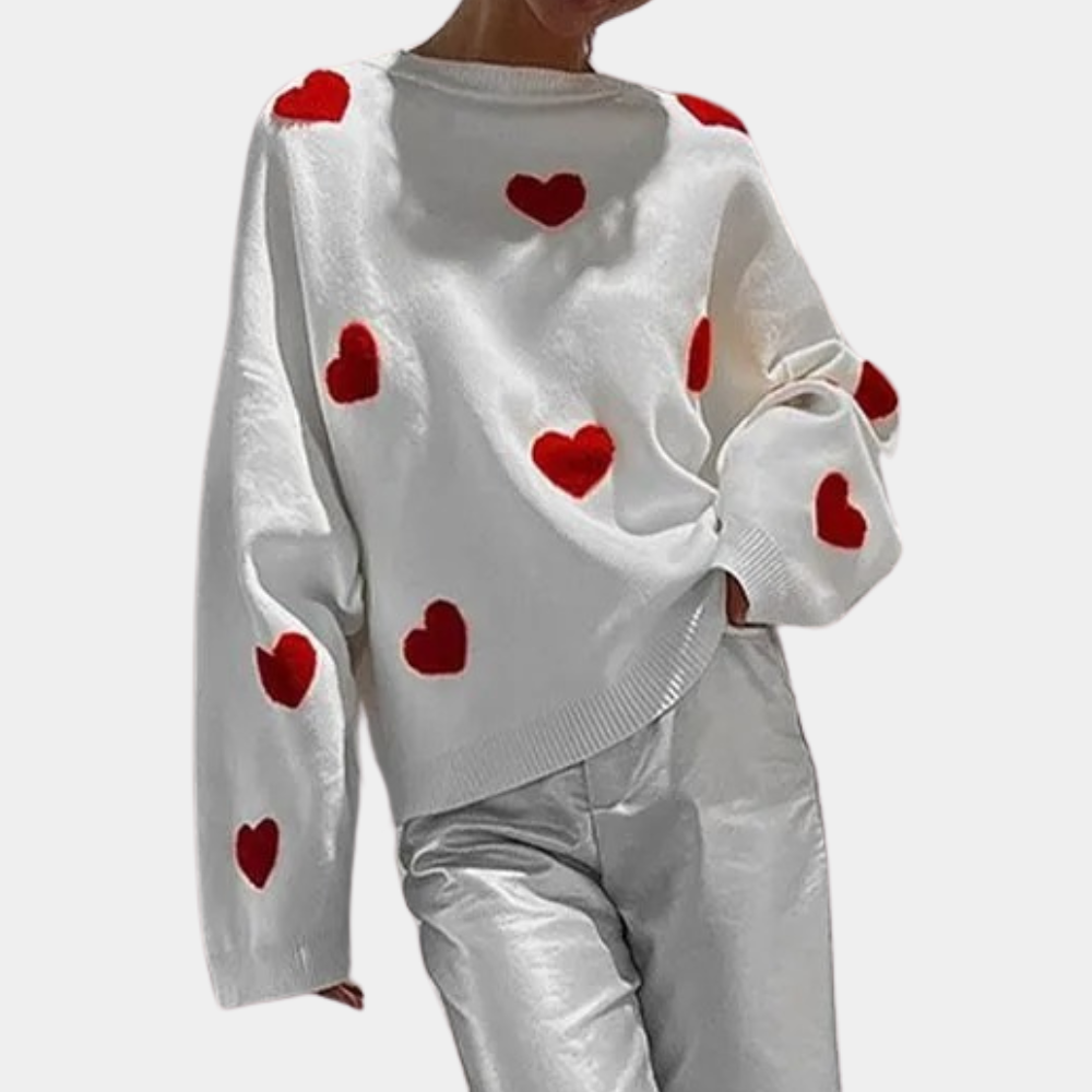 Maglione Oversize | Cuori Applicati | Morbido e Romantico