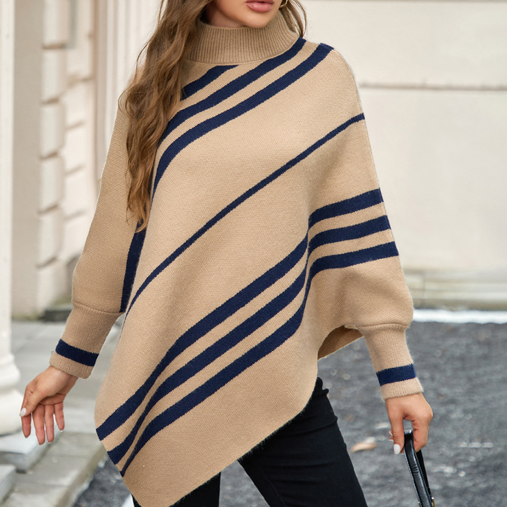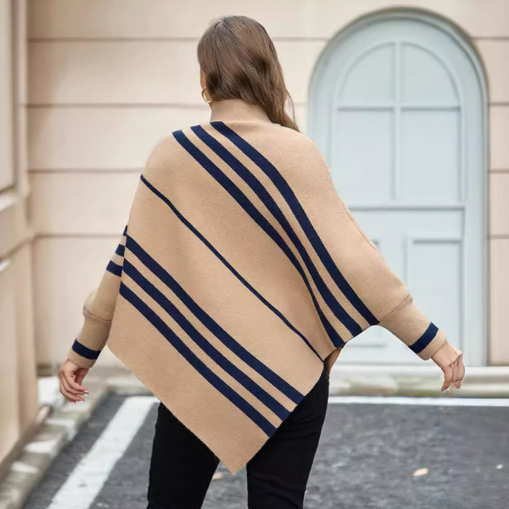 Poncho a Righe Asimmetrico | Morbido | Elegante e Versatile