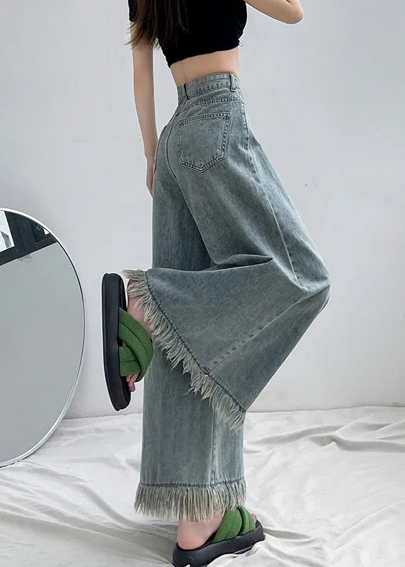 Questi jeans a gamba larga con frange sul fondo sono perfetti per distinguerti con un look moderno e audace.
