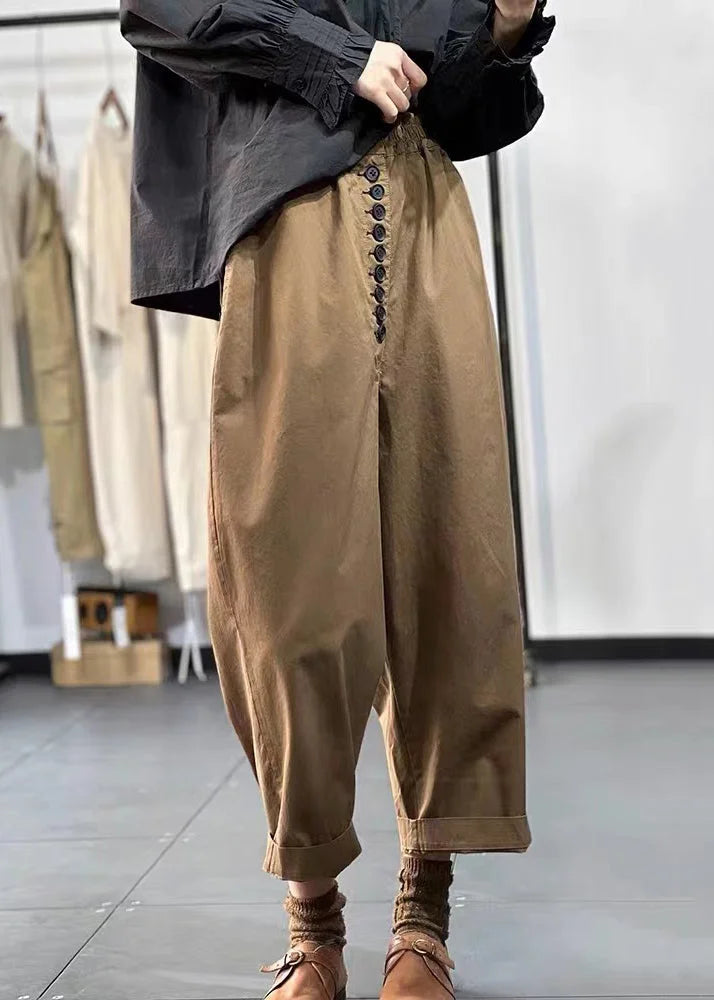 Questi pantaloni ampi con bottoni frontali si distinguono per il loro design rilassato ma curato nei dettagli.