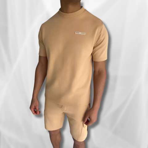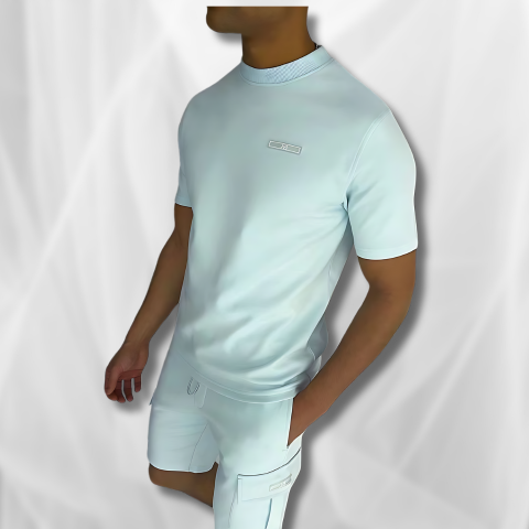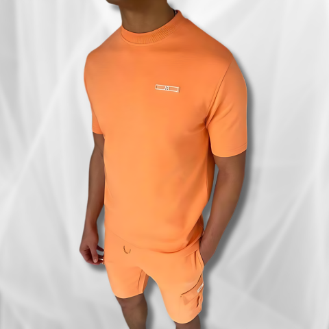 Questo coordinato t-shirt e pantaloncini è la scelta ideale per combinare comfort e stile urbano.
