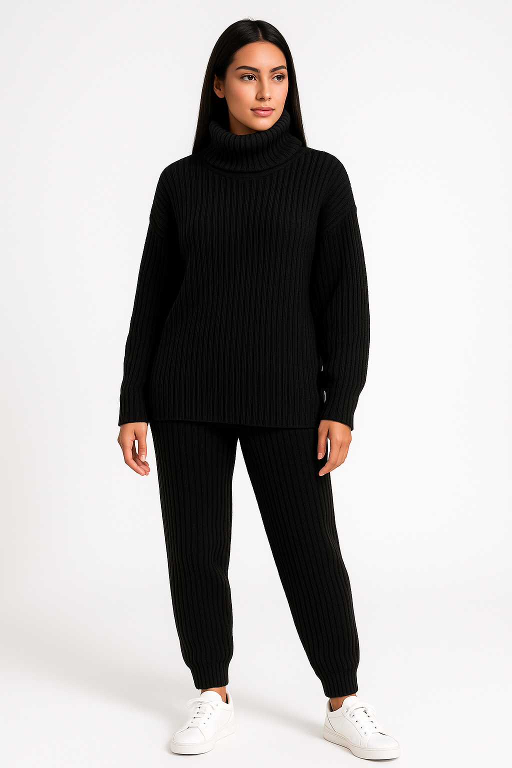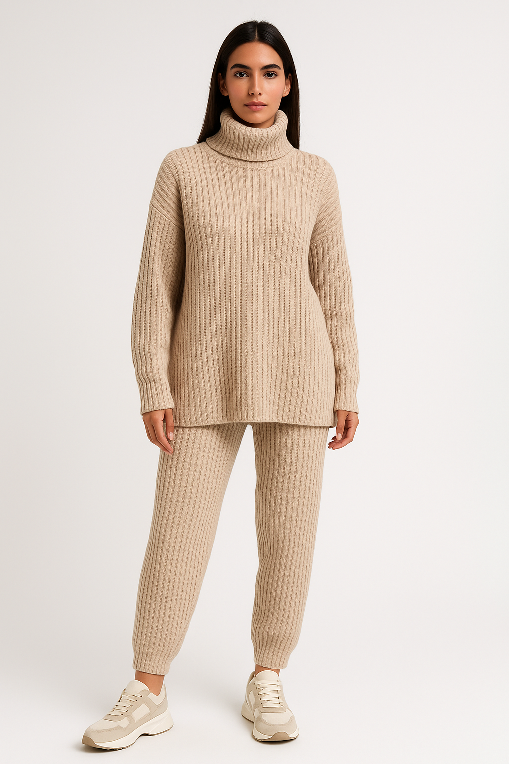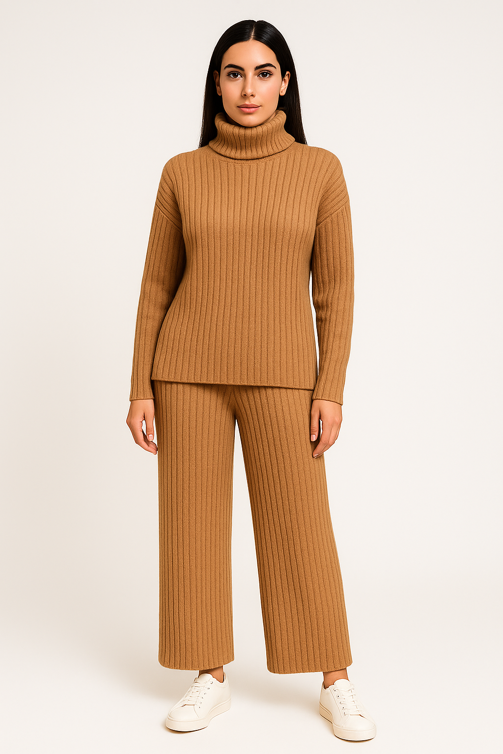 Completo in Maglia a Coste | Collo Alto | Loungewear Morbido e Caldo