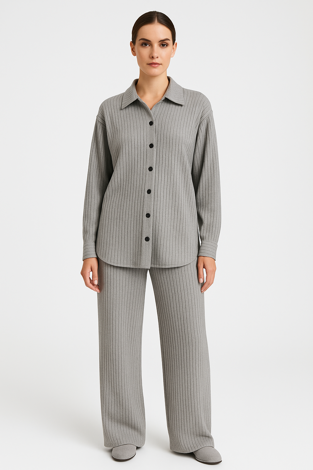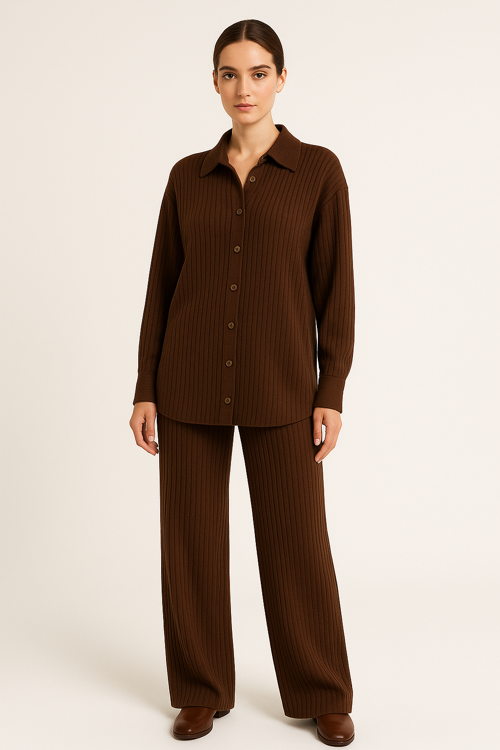 Completo in Maglia Cotelée Due Pezzi | Comfort Elegante | Stile Oversize