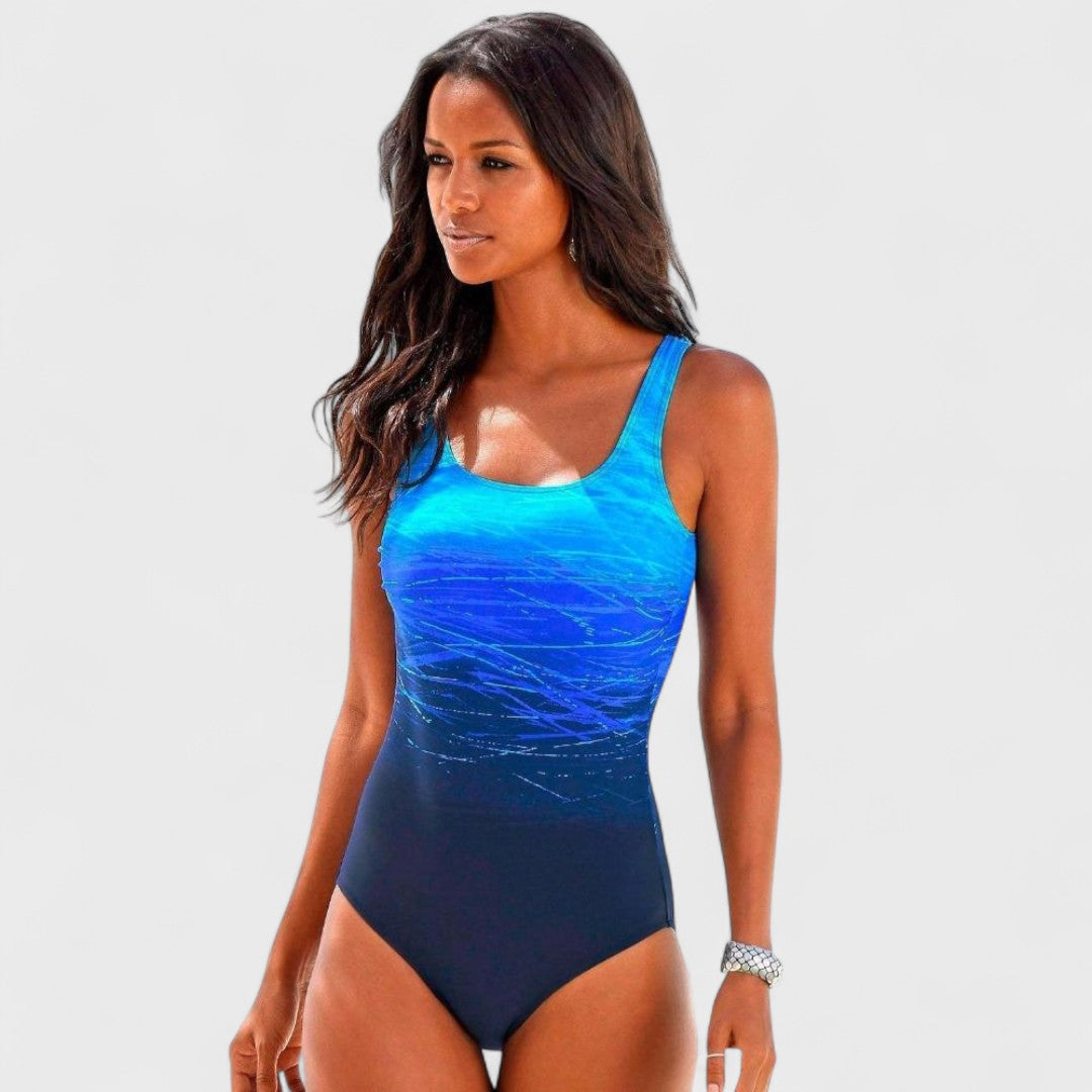 Questo costume intero sfumato unisce comfort e stile con un design moderno e colori vivaci.