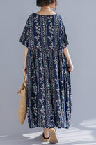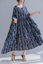 Questo abito lungo in cotone con stampa a righe floreali unisce comfort e stile in un design arioso e leggero.