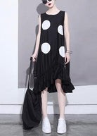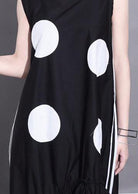 Questo abito nero senza maniche con maxi pois bianchi è perfetto per chi vuole distinguersi con stile.